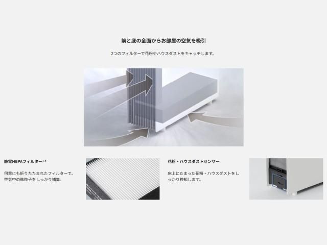 ● 花粉・ハウスダストセンサー:床上にたまった花粉・ハウスダストをしっかり検知します。