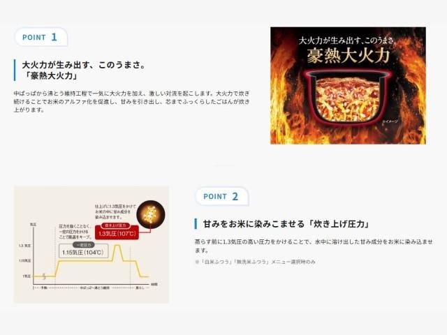 蒸らす前に1.3気圧の高い圧力をかけることで、水中に溶け出した甘み成分をお米に染み込ませます。(※「白米ふつう」「無洗米ふつう」メニュー選択時のみ。)