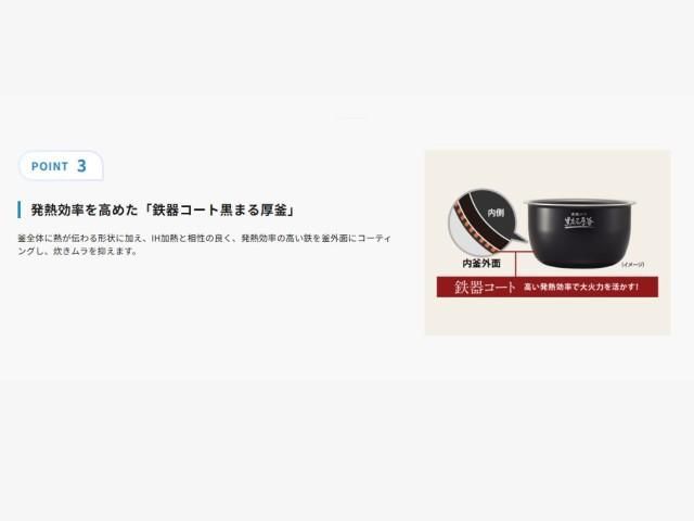 釜全体に熱が伝わる形状に加え、IH加熱と相性の良く、発熱効率の高い鉄を釜外面にコーティングし、炊きムラを抑えます。