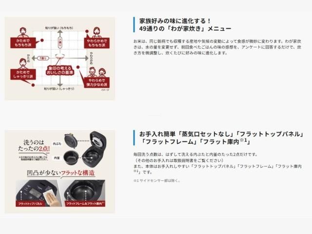 毎回洗う点数は、はずして洗える内ぶたと内釜のたった2点だけです。(※その他のお手入れは取扱説明書をご覧ください)また、本体はお手入れしやすい「フラットトップパネル」「フラットフレーム」「フラット庫内(※サイドセンサー部は除く。)」です。