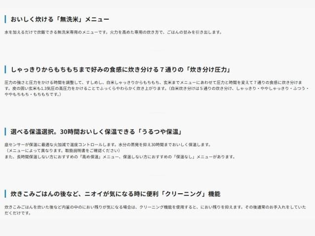 ・炊飯容量(白米L):0.5〜4合(0.09〜0.72L)