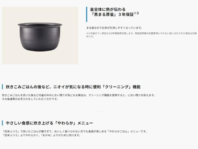 ・炊飯容量(白米):0.09〜0.54L(0.5〜3合炊き)