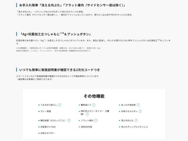 「洗える内ぶた」…ステンレス内ぶたがはずして洗えるのでいつも清潔。「フラット庫内(サイドセンサー部は除く)」は、庫内がフラットになっているので、落ちたごはん粒や汚れをサッとひと拭き。