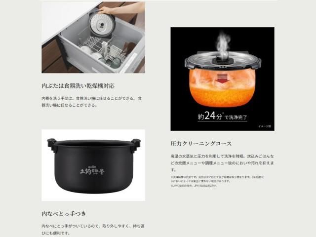 ワンタッチで着脱できる内ぶた。毎回のお手入れは、内ぶたと内なべの洗浄でOK。しかも内ぶたは食器洗い乾燥機対応。最小限のお手入れで、おいしく便利にごはんを楽しめます。内ぶたは食器洗い乾燥機対応。内蓋を洗う手間は、食器洗い機に任せることができる。圧力クリーニングコースで、高温の水蒸気と圧力を利用して洗浄を時短。炊込みごはんなどの炊飯メニューや調理メニュー後のにおいや汚れを抑えます。(※JPV-X100は約24分で洗浄完了。)
