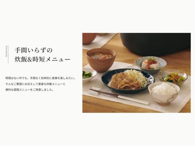 時間はない中でも、手間なく効率的に食事を楽しみたい。そんなご要望にお応えして「少量高速」メニューや「おにぎり」メニューなどの豊富な炊飯メニューと、「クイック調理」メニューや「スロー調理」メニューなどの便利な調理メニューをご用意しました。