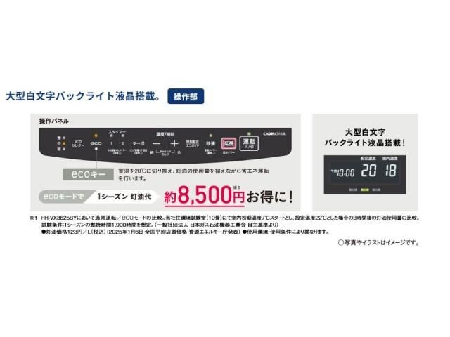 ダブルフローで温度の異なる2層の温風を同時に吹き出し温風の上昇を抑えるので、足もとからすばやくお部屋のすみずみまで温めることができます。ターボキーを押すと、定格出力プラス10%アップの暖房出力で運転開始。180秒からカウントダウンを終了するとお知らせブザーを鳴らして通常運転に戻ります。また、操作部は大型白文字バックライト液晶搭載。