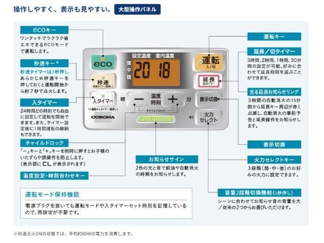 低消費電力、秒速点火、低燃費で灯油も長持ち。使いやすさを実感。