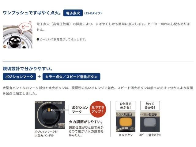 電子点火(高電圧放電)の採用により、すばやくしかも簡単に点火します。ヒーター切れの心配もありません。(※ピーという放電音がして点火します。)