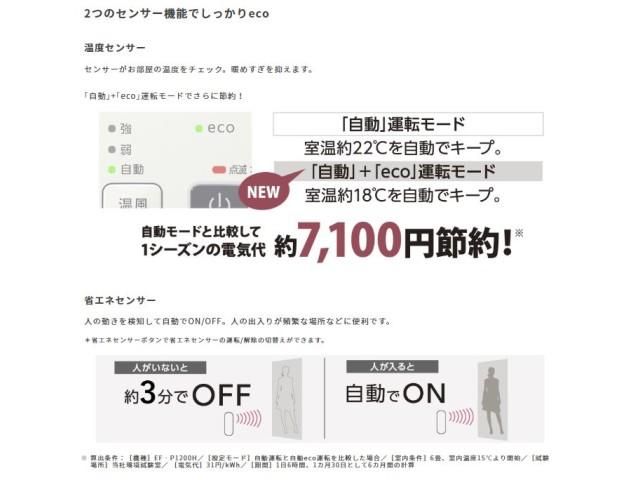 ● 温度センサー:センサーがお部屋の温度をチェック。暖めすぎを抑えます。