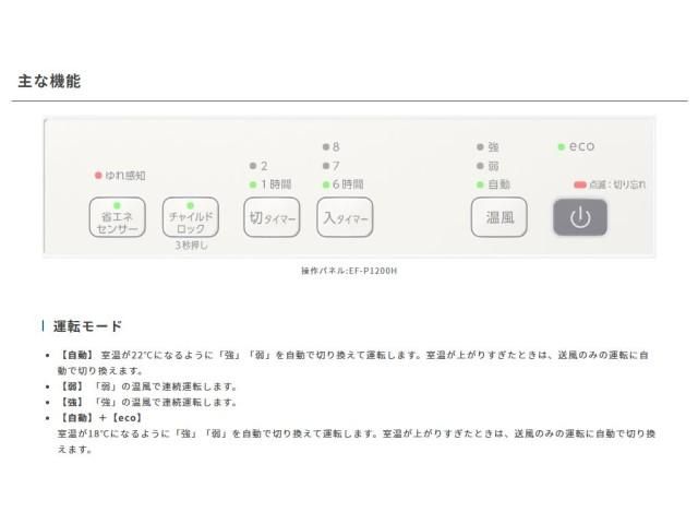 ※商品はセラミックファンヒーター Pタイプ EF-P1200H-W ホワイト(1点)になります。