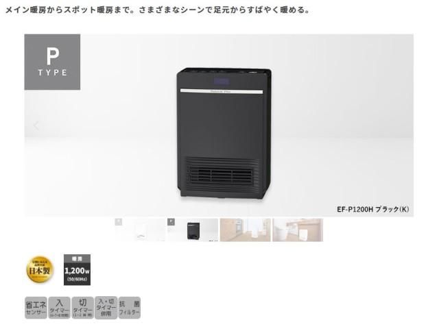 ※商品はセラミックファンヒーター Pタイプ EF-P1200H-K ブラック(1点)になります。